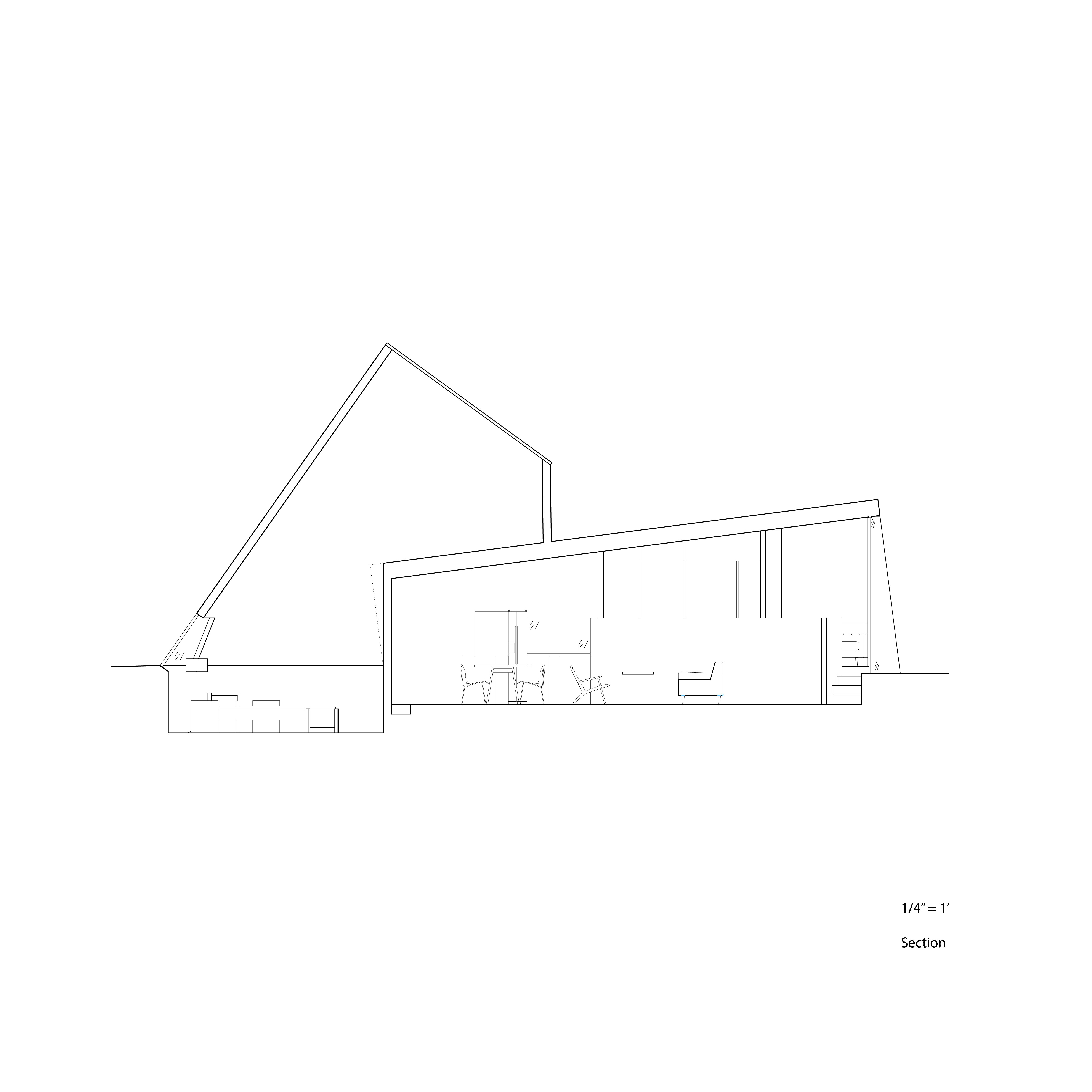 This project is composed of two squares in plan, one rotated and inscribed within the others. This creates uneven wall thicknesses which can be used for circulation, to carve out spaces, and openings. The squares are intersected with two circles: one in plan and one above the plan (defining the roof). This forms a truncated cone with an oculus that serves to illuminate the space. The project also intersects geometry in section, with a tilted rectangle (squares in plan) intersecting a trapezoid (circles in plan). The cuts into the geometry are colored in 3D with solid primary colors.