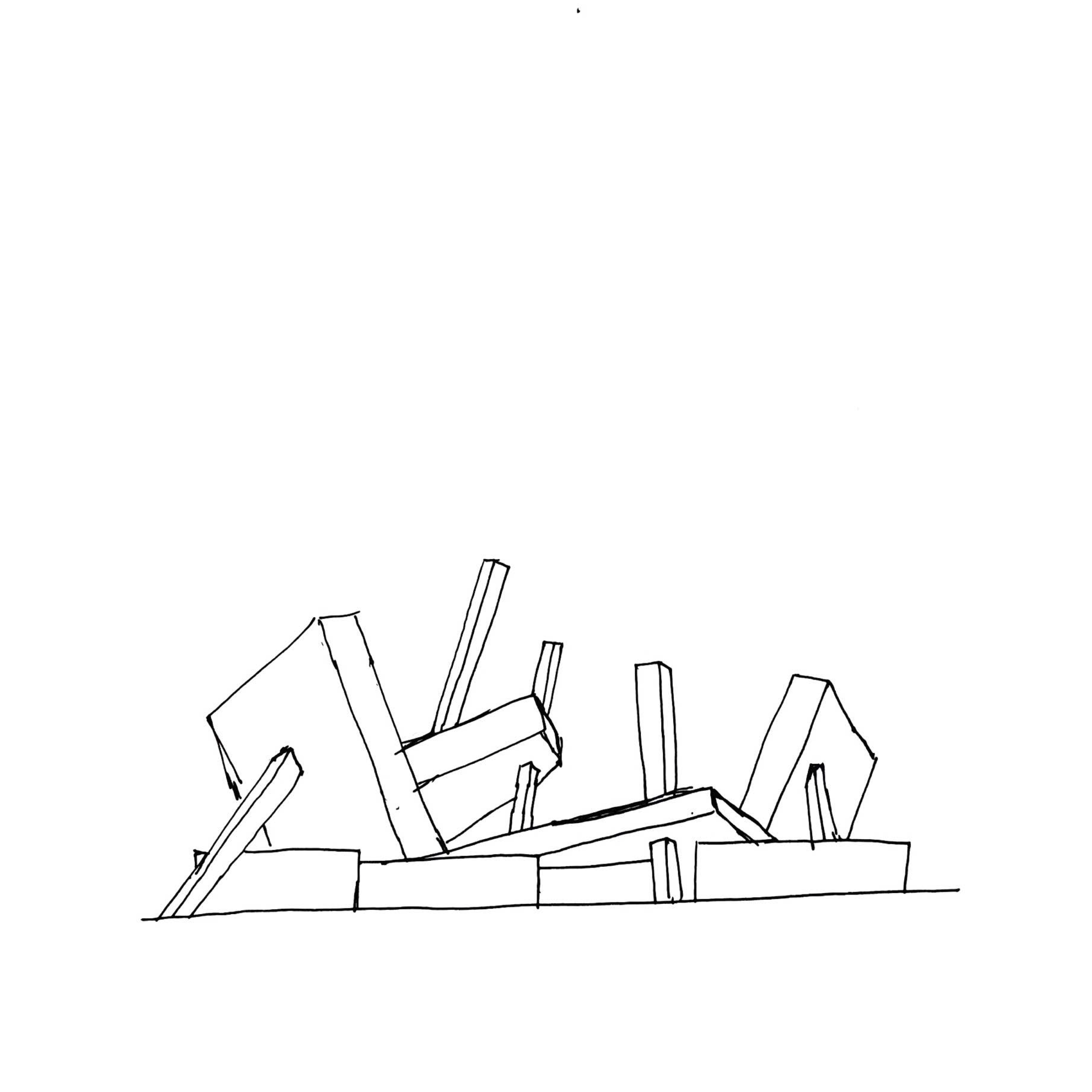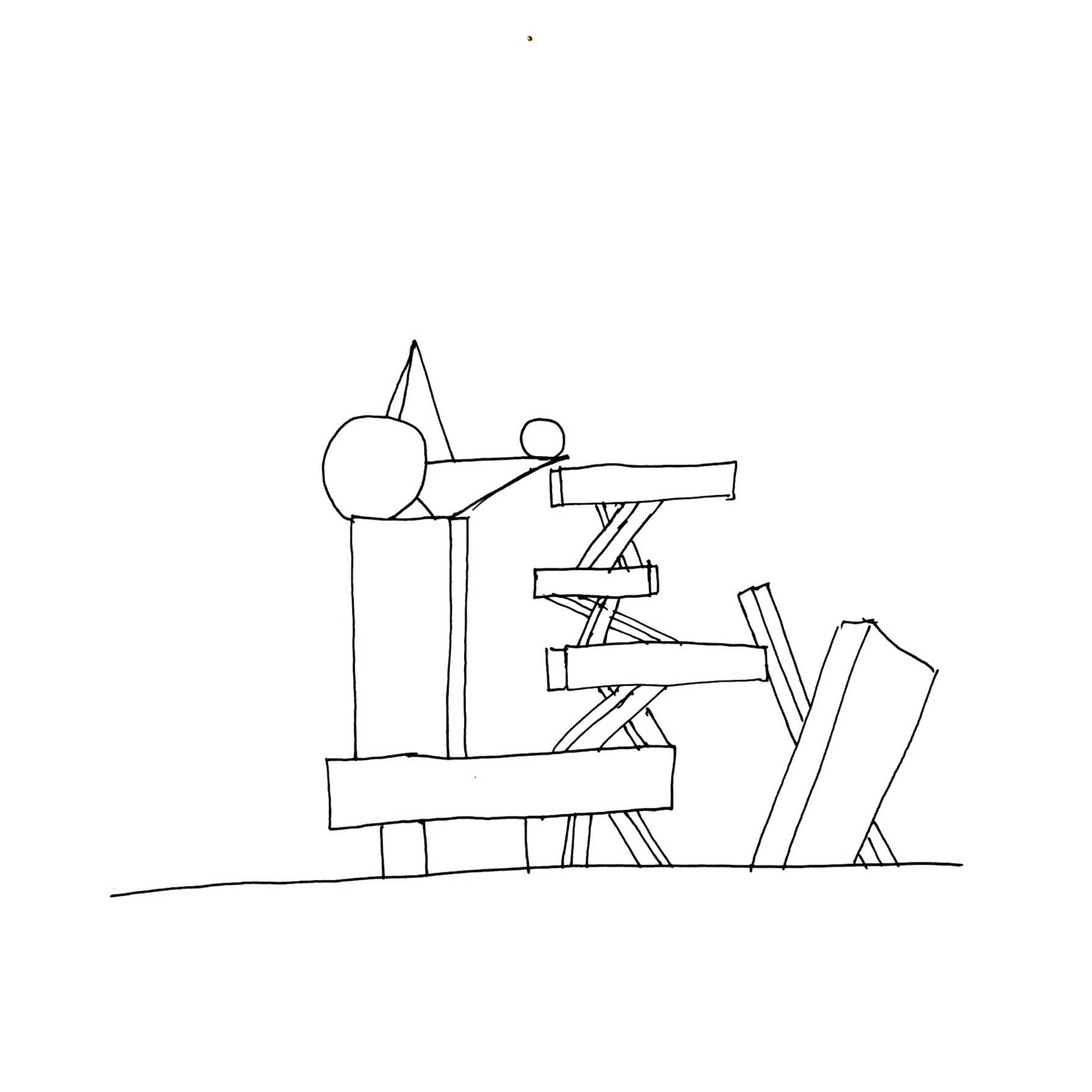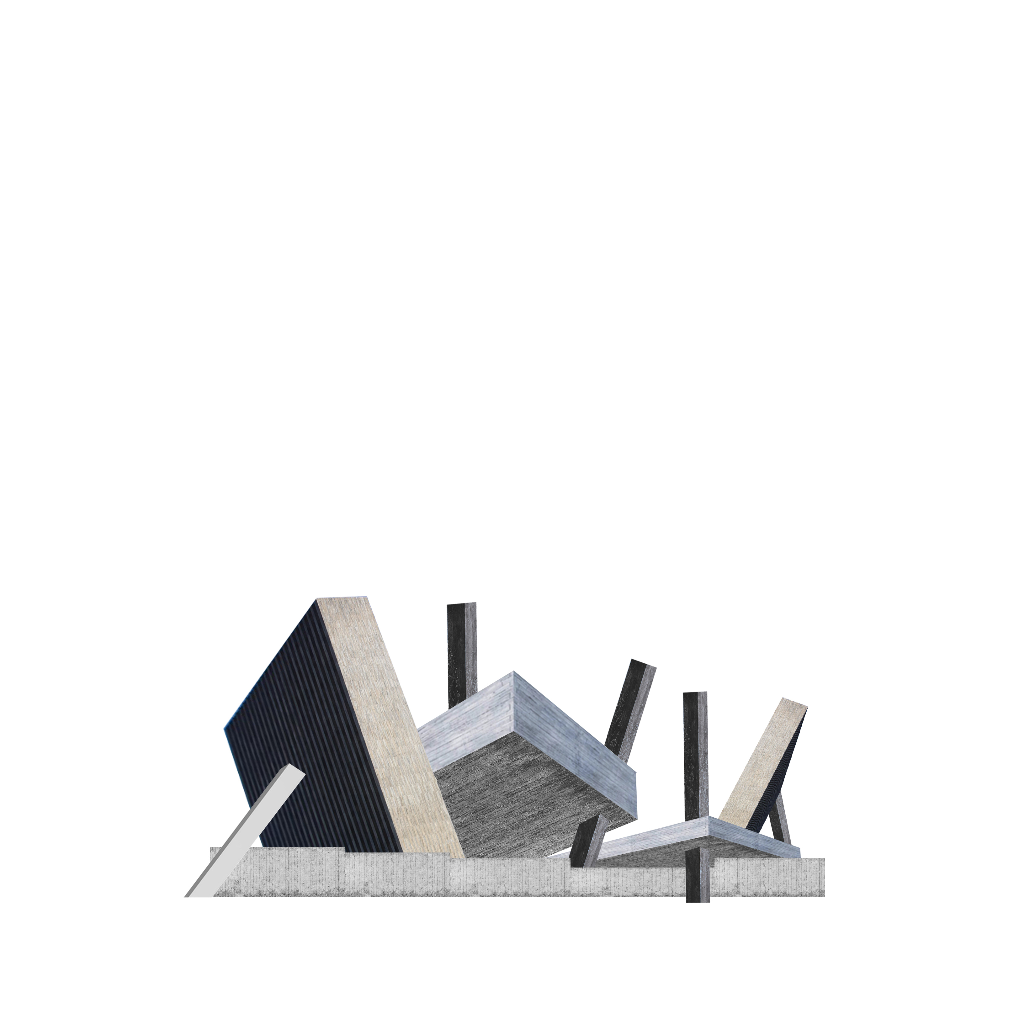 This study focused on drawing structures on the verge of collapse using only distorted Platonic solids in elevation. The idea is to create a self-sustaining structure that supports itself in a counter-intuitive way. The next step after drawing was representing them using digital collage techniques, and finally to build some of them as models (model is made primarily out of wood, with a styrofoam base and sphere component).